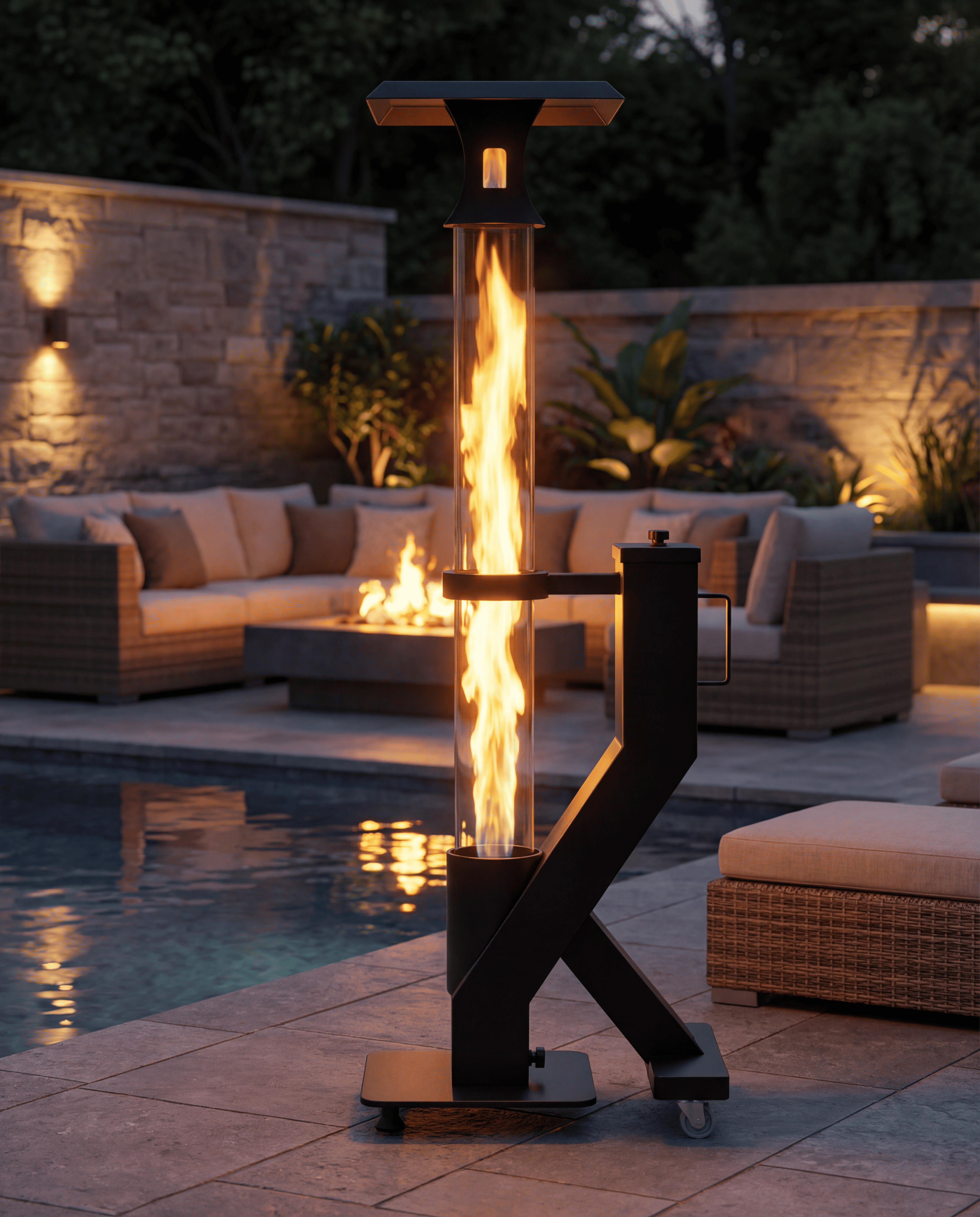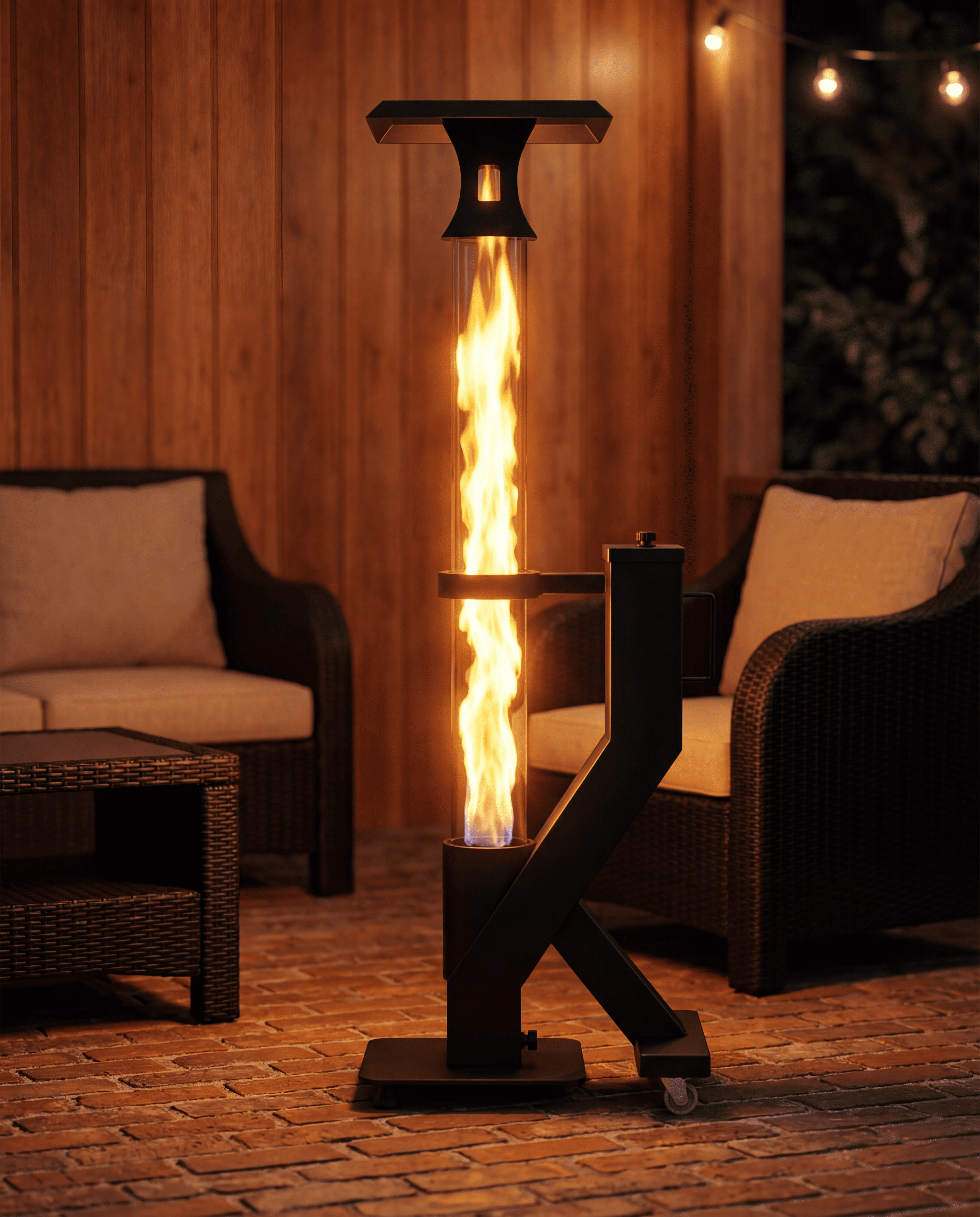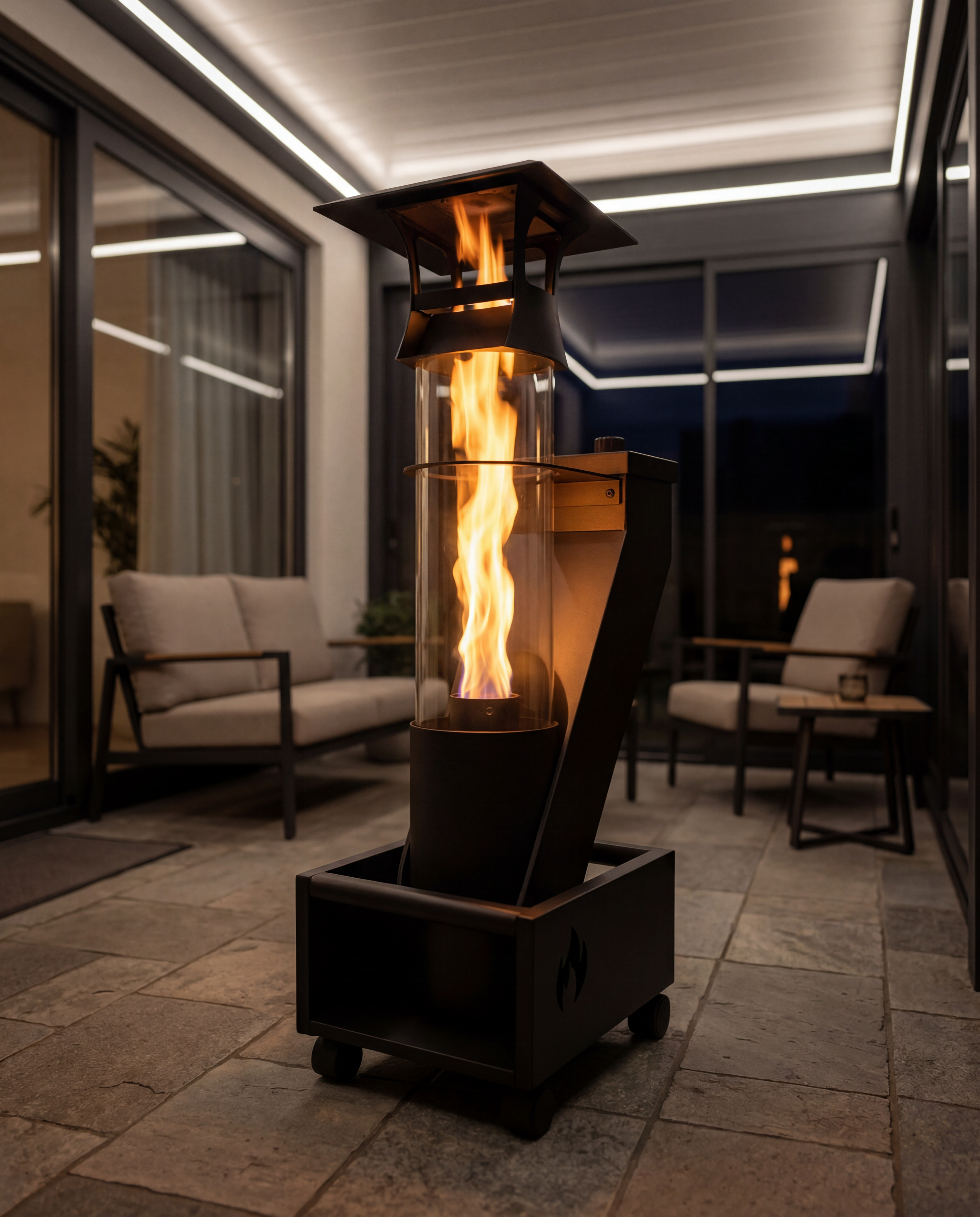 FireRocket Pro Pelletkachel: dankzij de sterke verbrandingskracht en de extra lange glazen buis (120 cm) creëert de kachel een hoge, verticale vlam die zowel warmte als sfeer geeft. Zelfs in de open lucht verspreidt de Pro-variant aangename warmte in de directe omgeving, ideaal voor gebruik op een terras of in de tuin.
