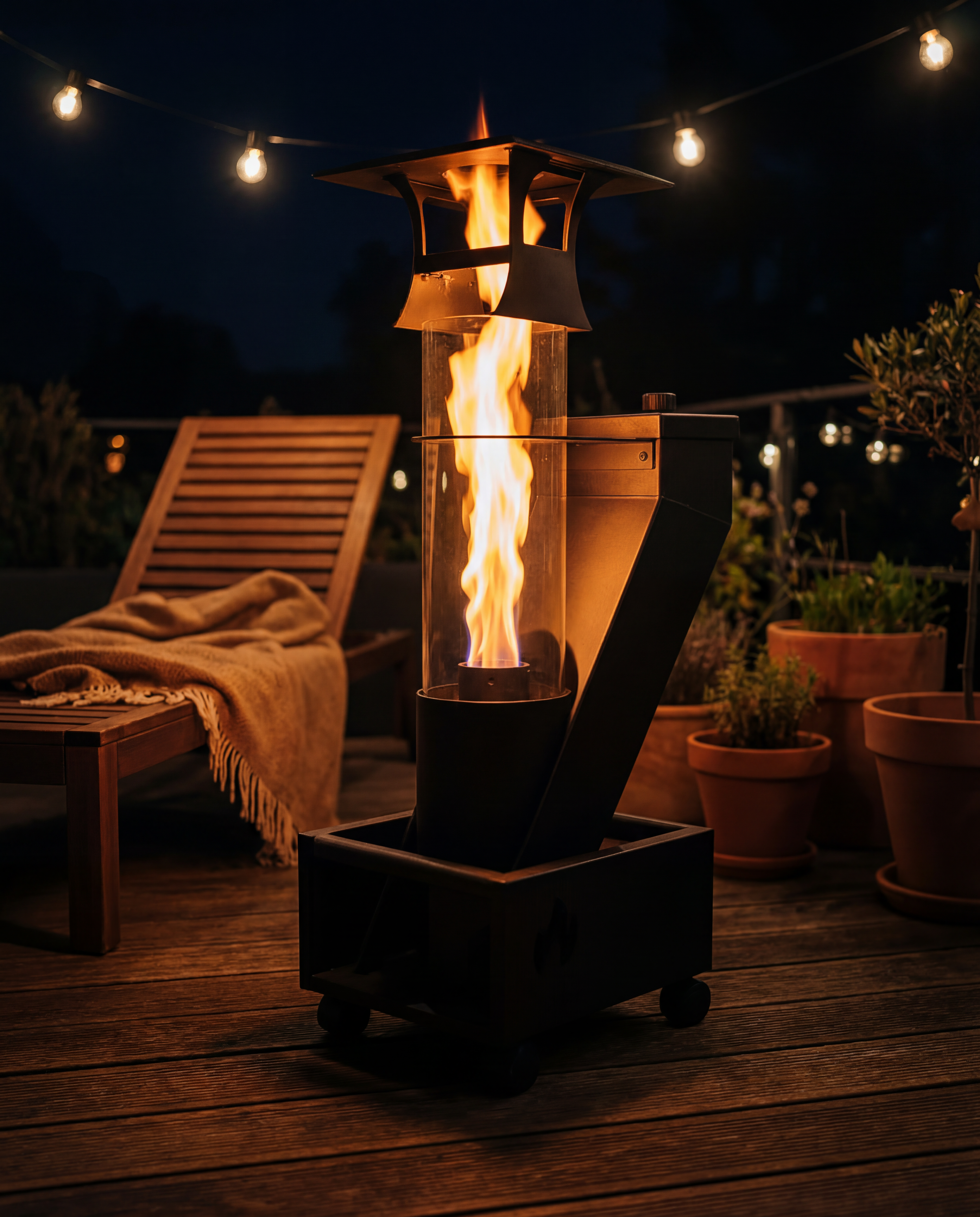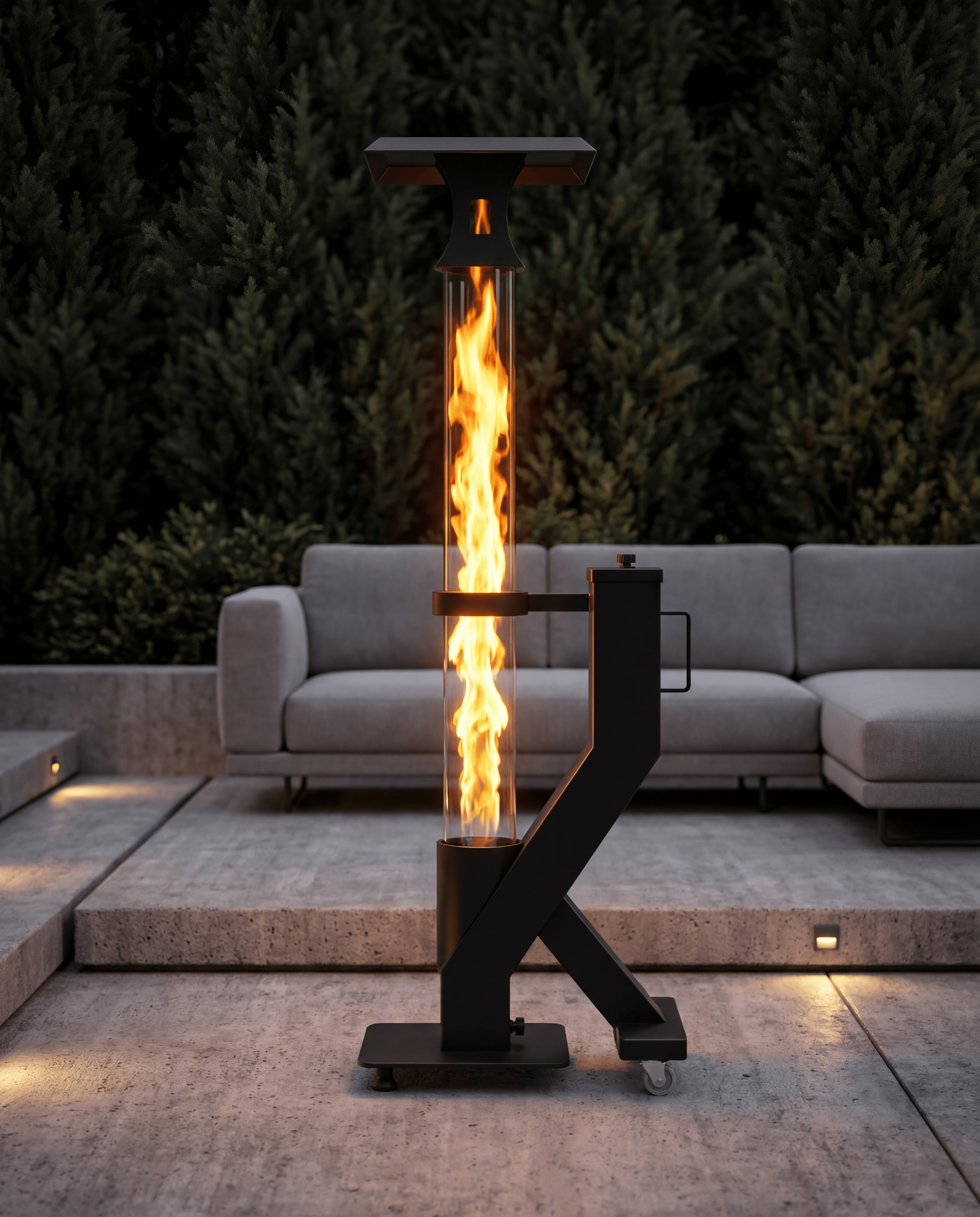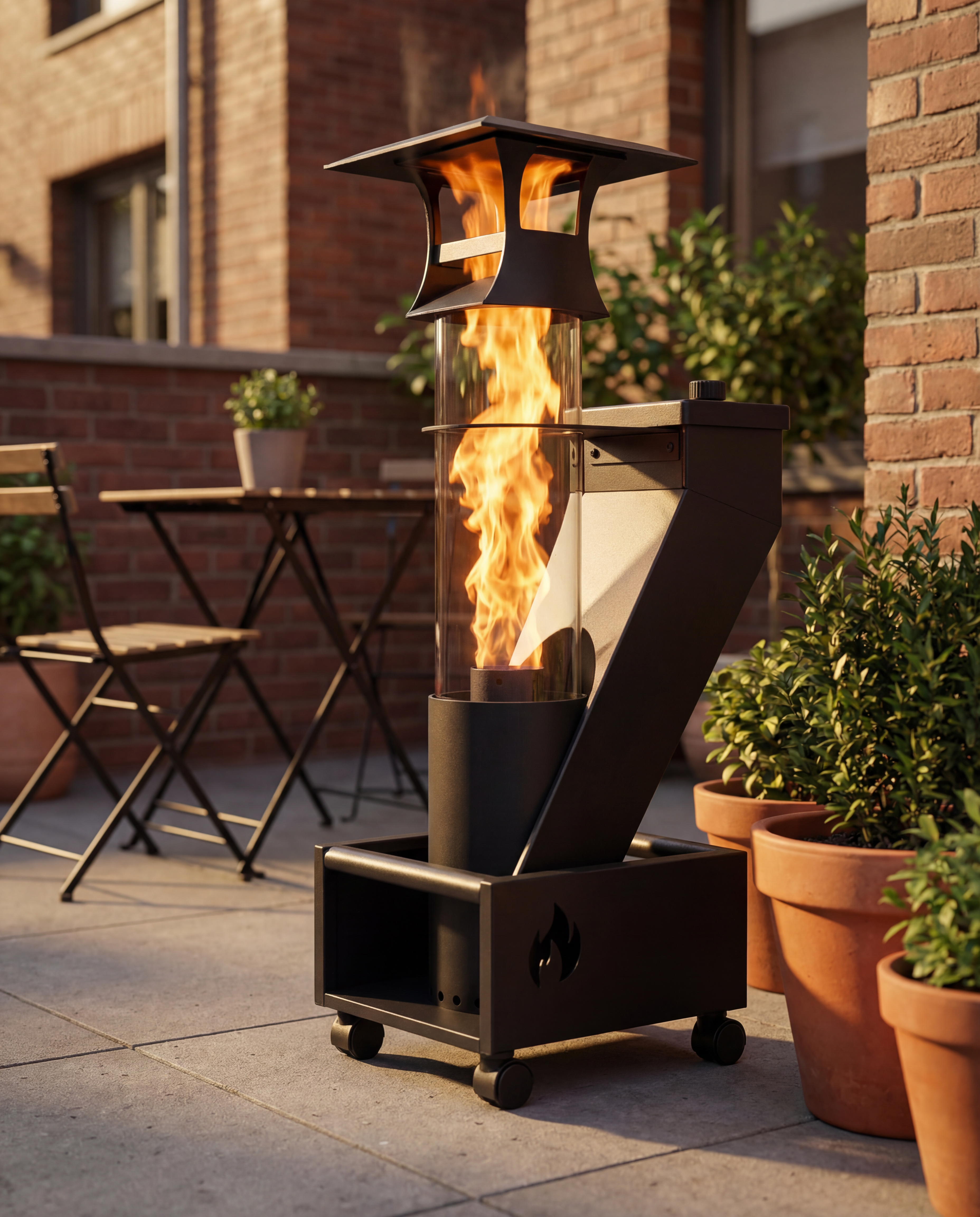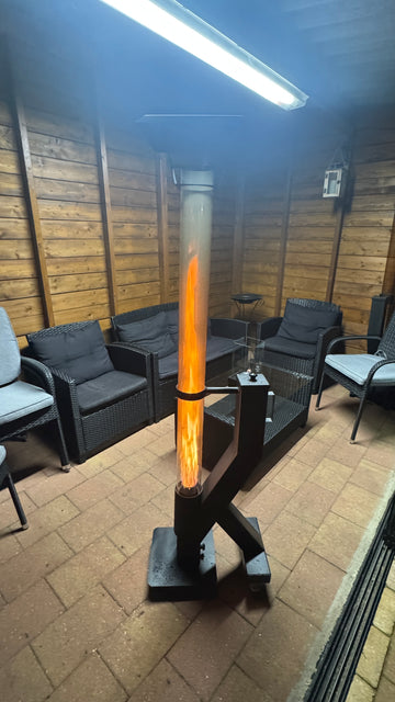FireRocket Pelletkachel: dankzij de hoge verbrandingskracht en de verticale vlam geeft de pelletkachel veel warmte af. Ook in de open lucht zorgt deze voor een aangename warmte in de directe omgeving, ideaal voor een terras of tuin.