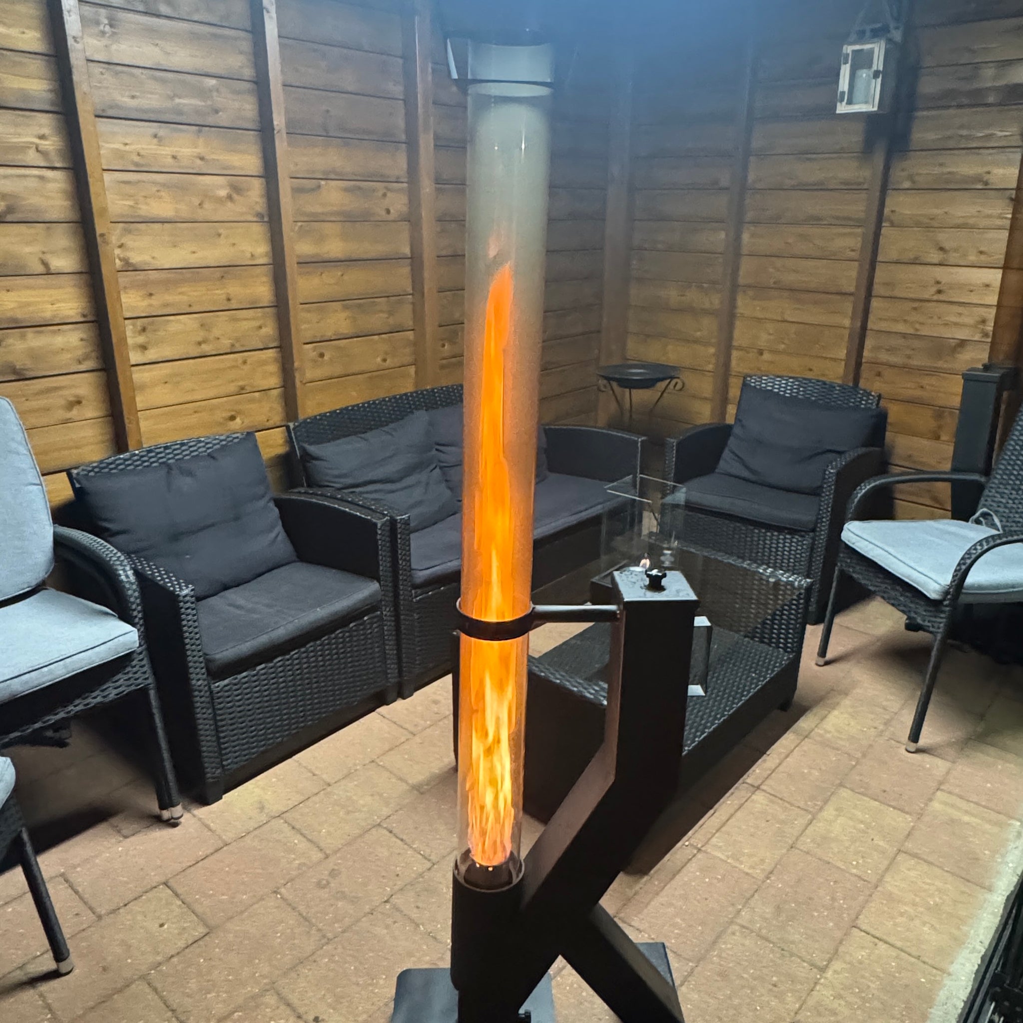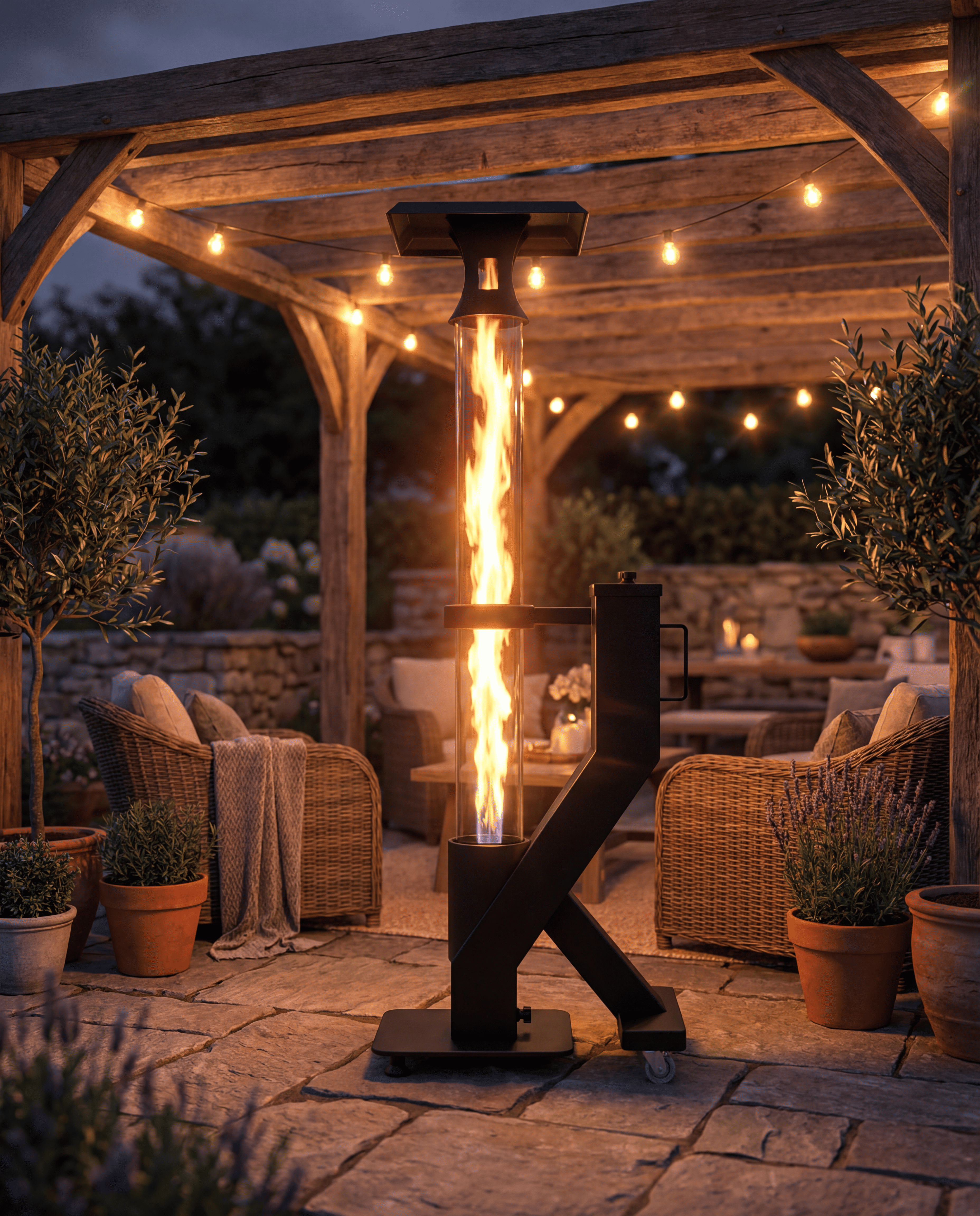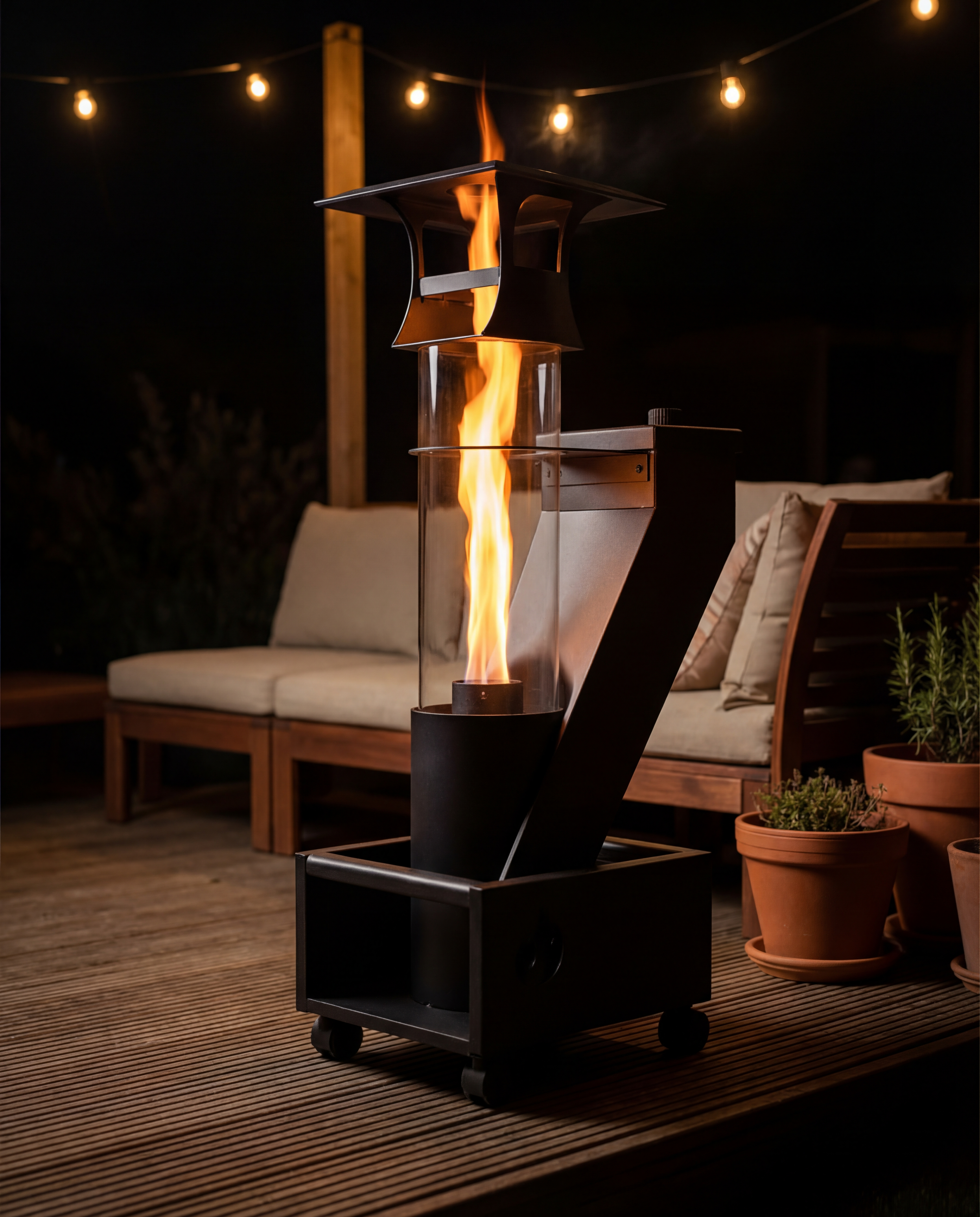 FireRocket Pelletkachel: dankzij de hoge verbrandingskracht en de verticale vlam geeft de pelletkachel veel warmte af. Ook in de open lucht zorgt deze voor een aangename warmte in de directe omgeving, ideaal voor een terras of tuin.